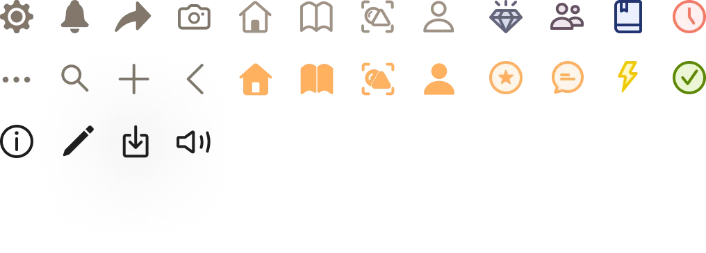 Um eine Mischung aus Spaß und Übersichtlichkeit beim Lernen zu gewährleisten, wurden gezielt Farben eingesetzt. Überschriften und Fließtexte sind in einem sehr dunklen Grau gehalten, Standard-Icons und die Tab-Bar in warmen Brauntönen. Für Buttons wurde Pastellorange gewählt, während besondere Icons, etwa für Gems oder die Lernstatistik, durch bunte Farben hervorgehoben werden.